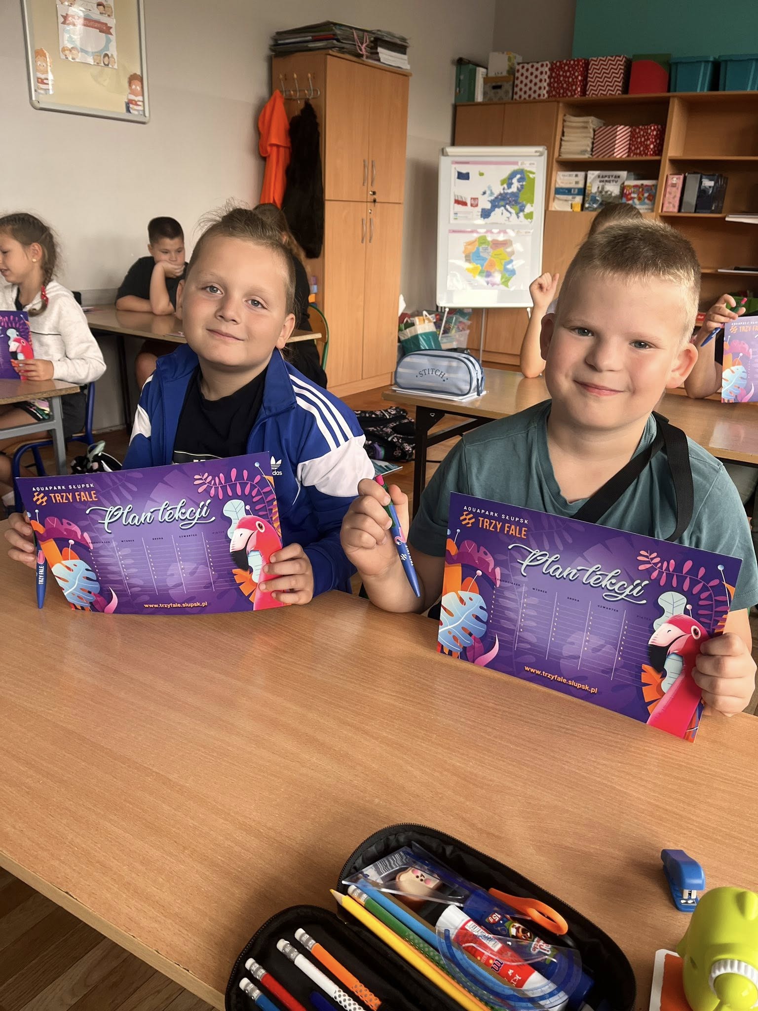 Park Wodny Trzy Fale przygotował dla nich kolorowe plany lekcji oraz praktyczne długopisy.