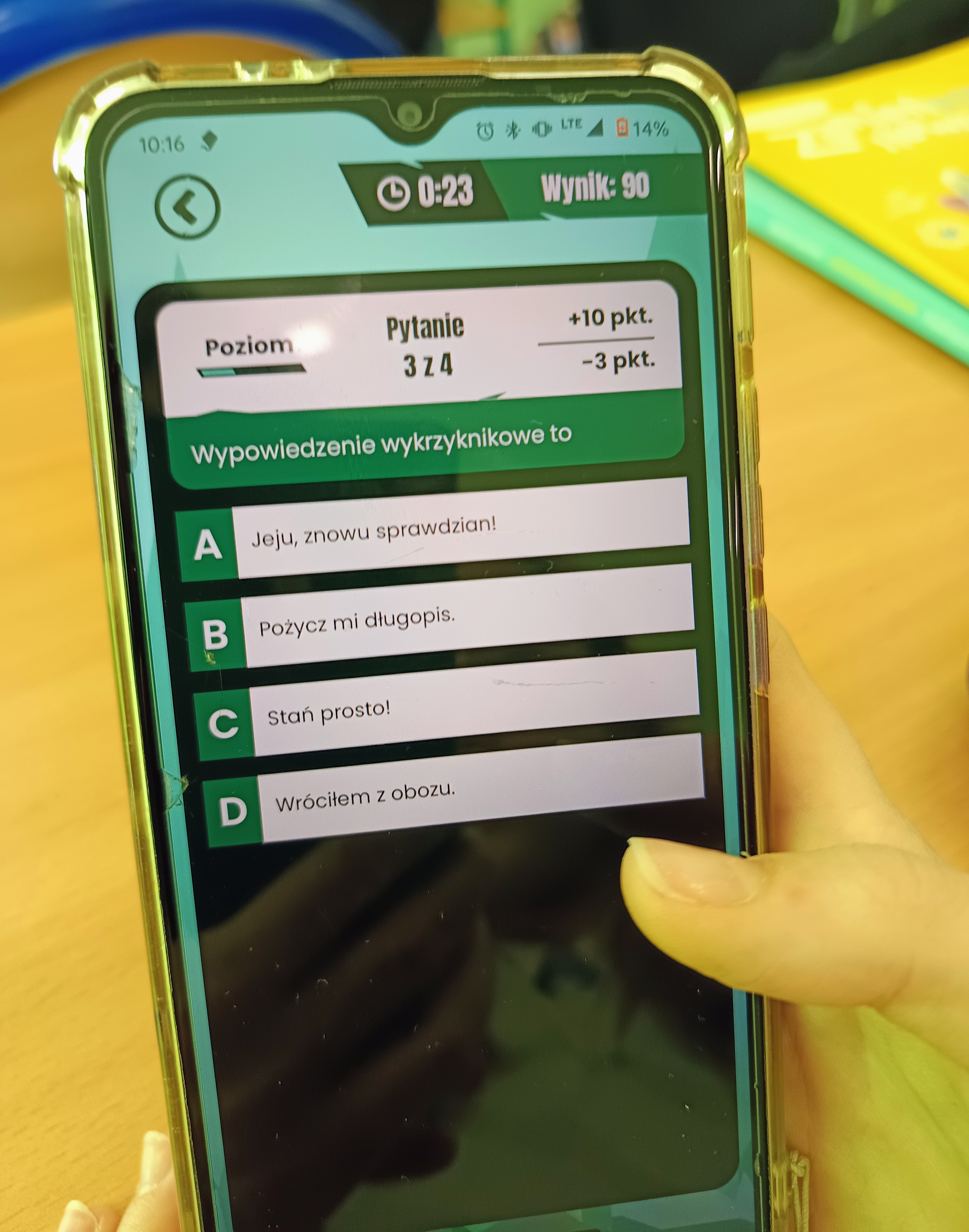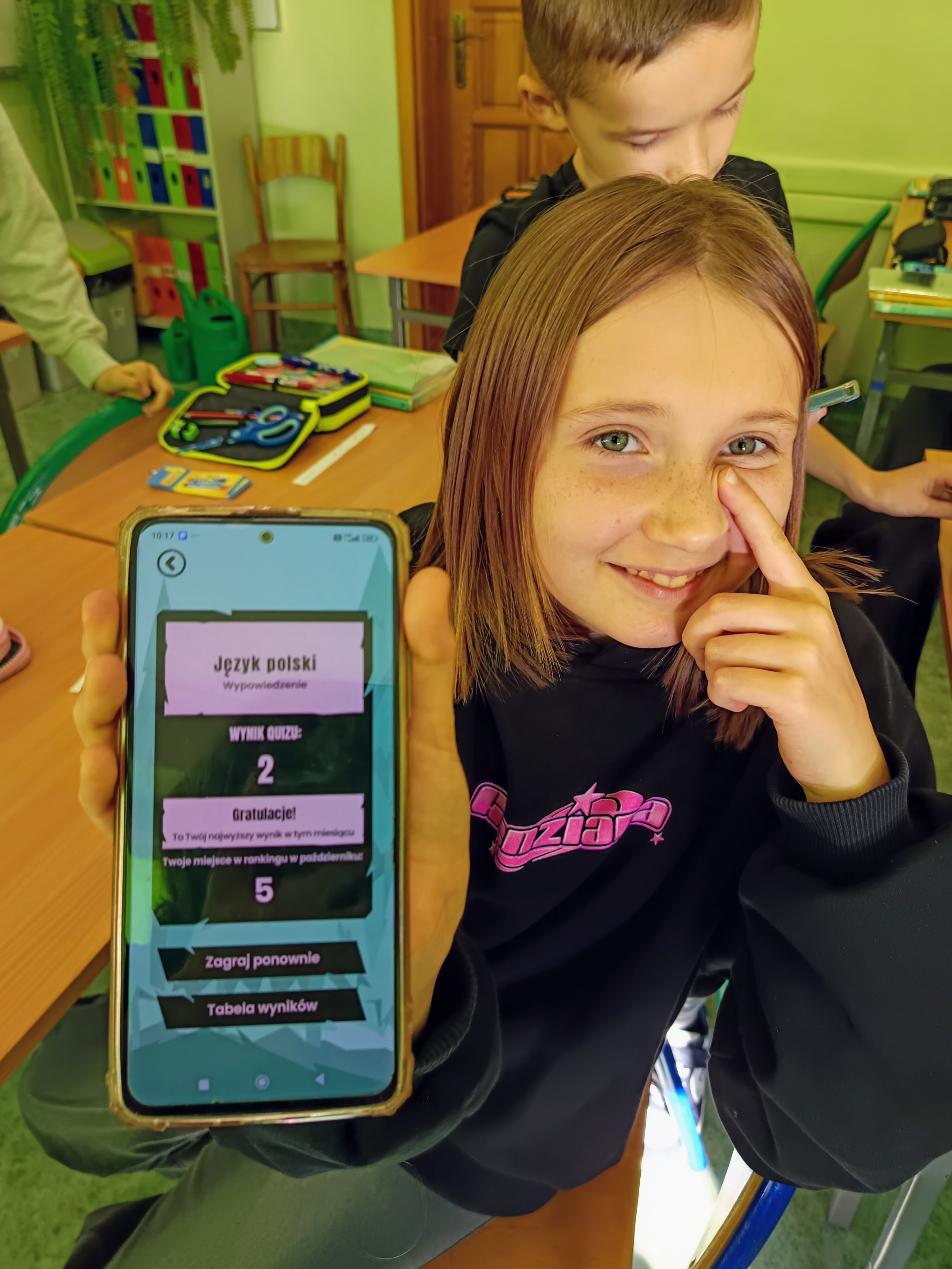 W trakcie lekcji wykorzystano elementy gamifikacji. Dzieciom zaprezentowano aplikację Gryzli, którą następnie samodzielnie zainstalowały na swoich telefonach.