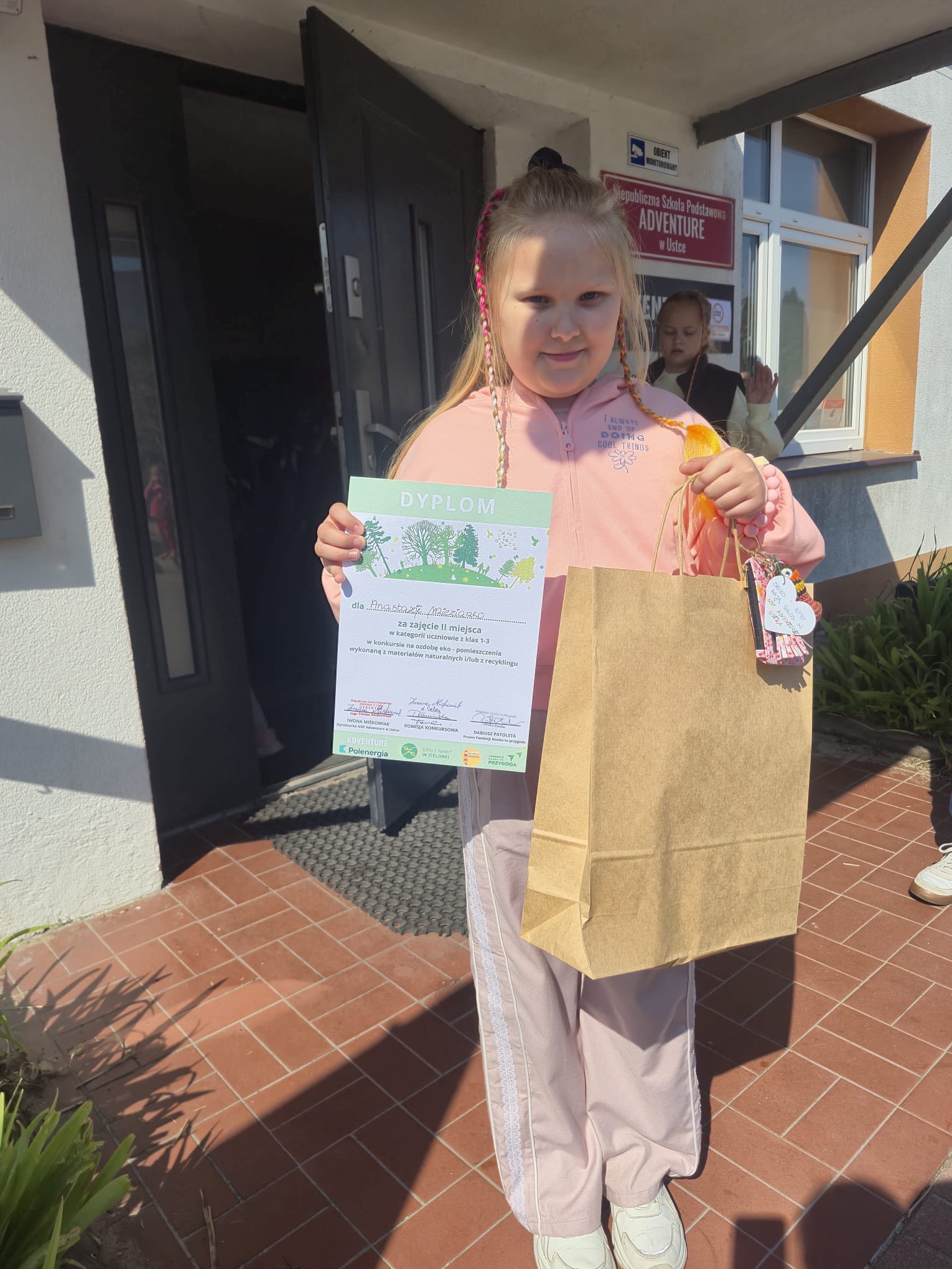 Konkurs polegał na wykonaniu pracy plastycznej o charakterze ekologicznym – uczestnicy mieli za zadanie stworzyć ozdobę lub dekorację do szkolnego „Zielonego Zakątka Wyciszenia”. Prace musiały być wykonane z materiałów naturalnych lub pochodzących z recyklingu, co miało na celu promowanie postaw proekologicznych oraz rozwijanie kreatywności dzieci. Z radością informujemy, że Anastazja Miezianko, uczennica klasy 2b, zajęła II miejsce.