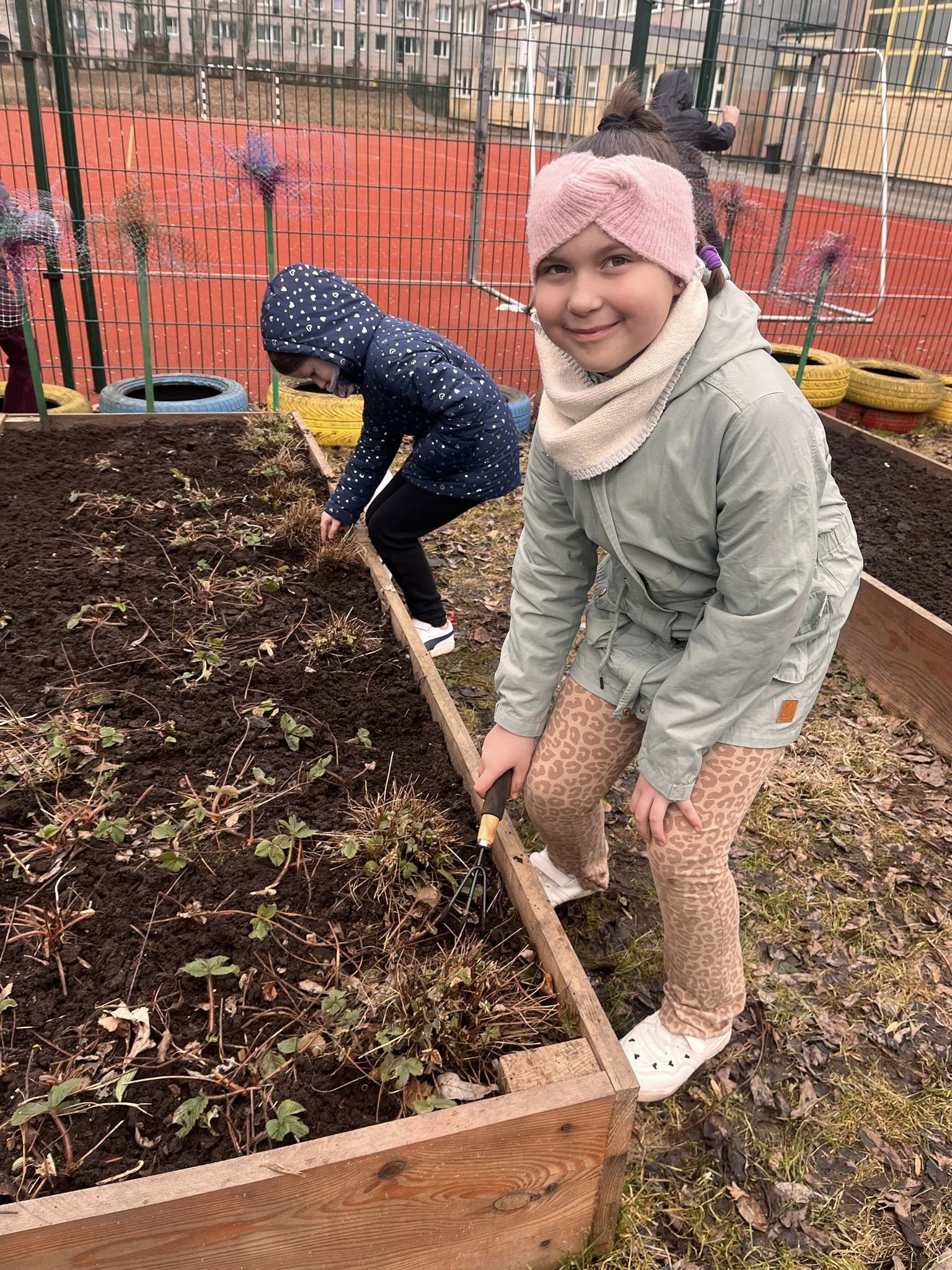 Dzieci spulchniły ziemię, wyzbierały wysuszone liście i uporządkowały grządki, dzięki czemu ogród jest już gotowy na dalsze wiosenne prace.