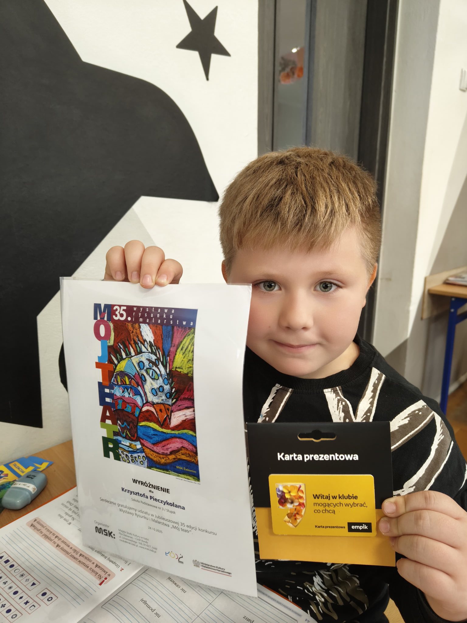 Z radością informujemy, że Krzysztof Pieczykolan z klasy 2c, uczeń naszej szkoły, otrzymał wyróżnienie w Ogólnopolskim Konkursie Plastycznym pt. „MÓJ TEATR”!