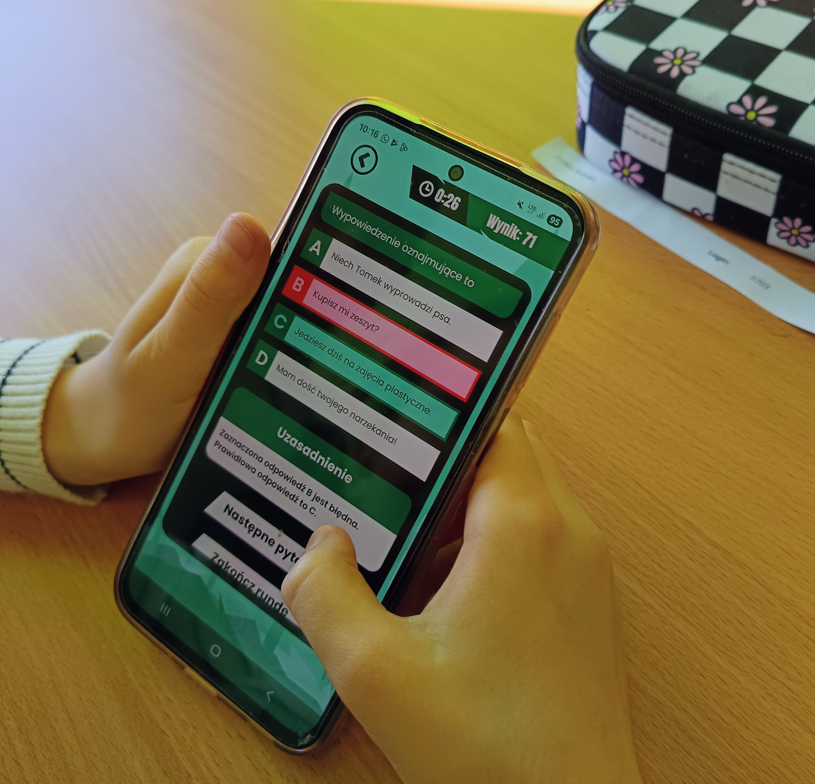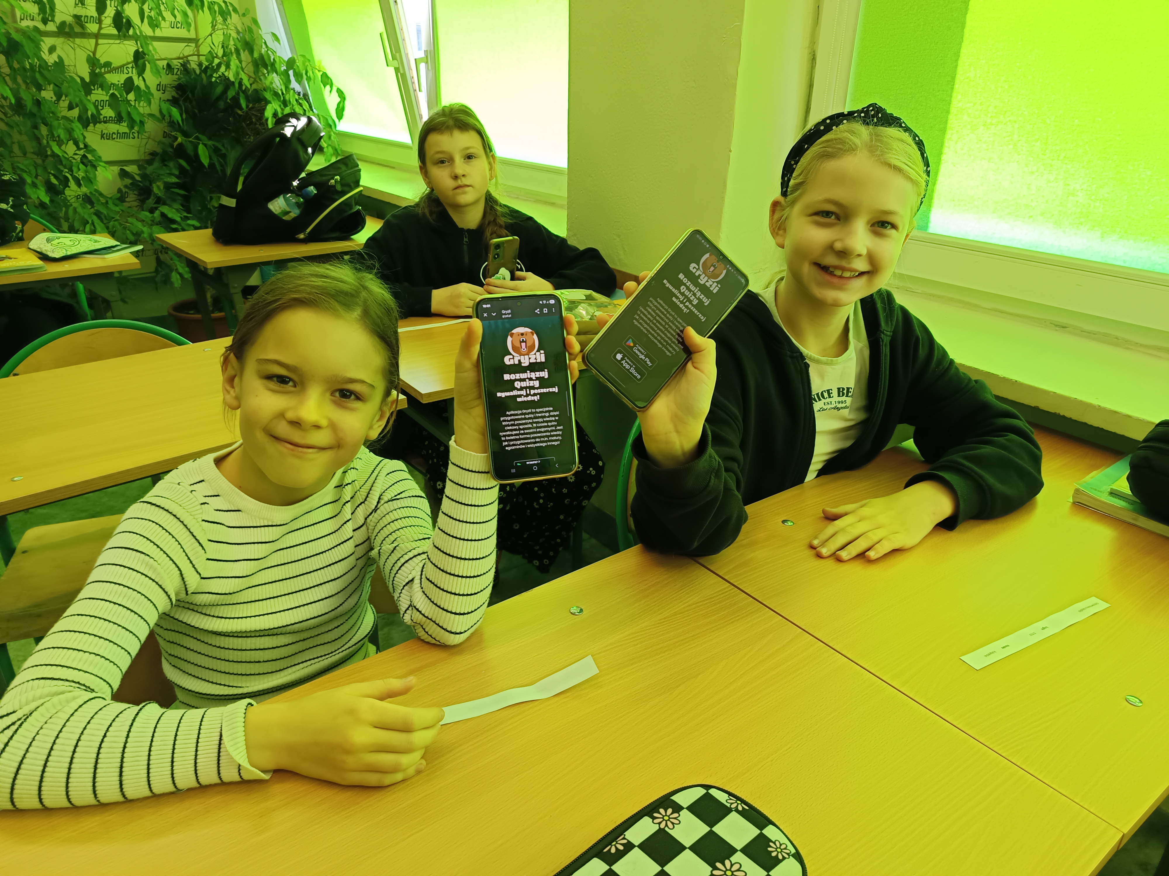 W trakcie lekcji wykorzystano elementy gamifikacji. Dzieciom zaprezentowano aplikację Gryzli, którą następnie samodzielnie zainstalowały na swoich telefonach.