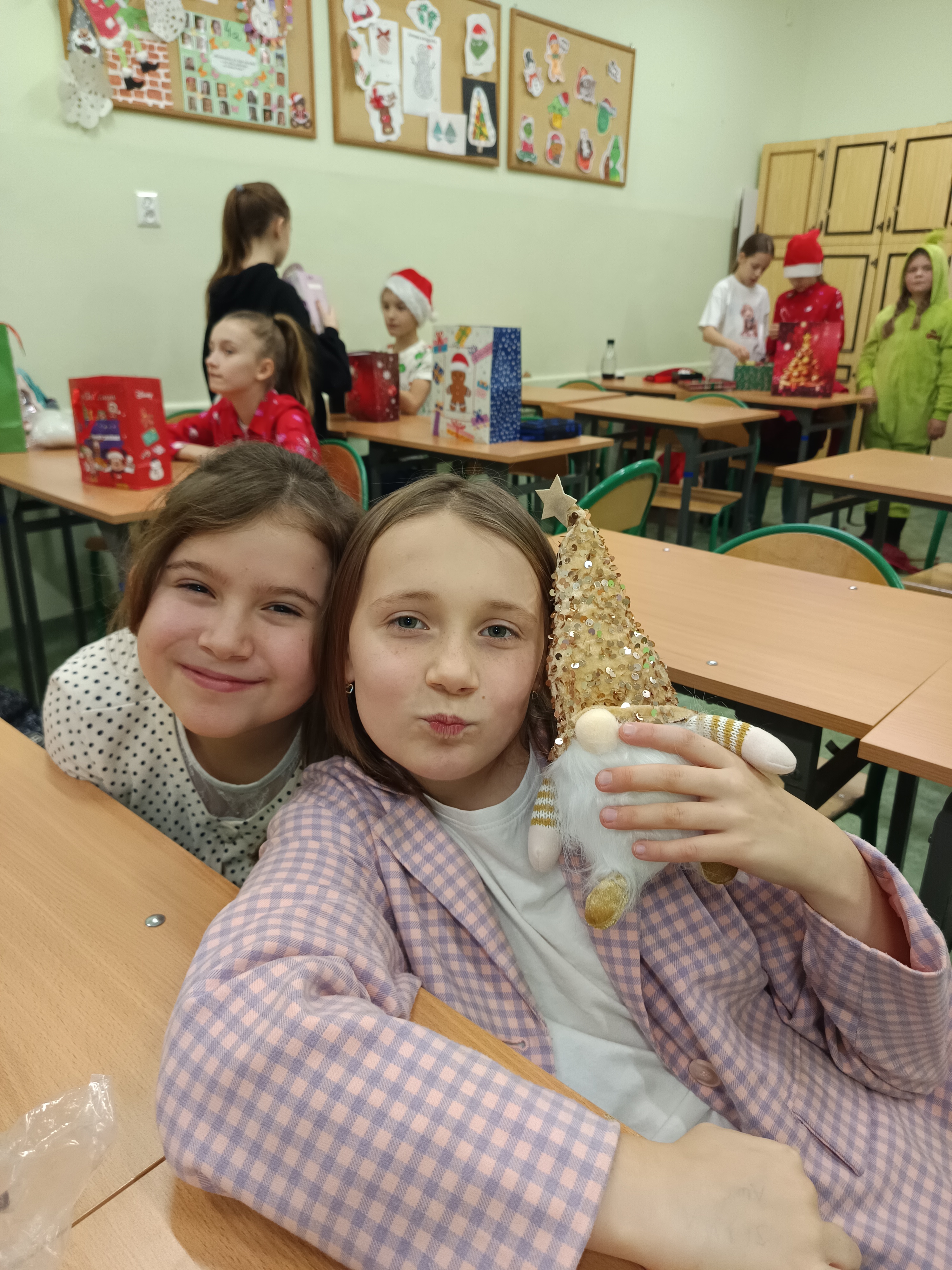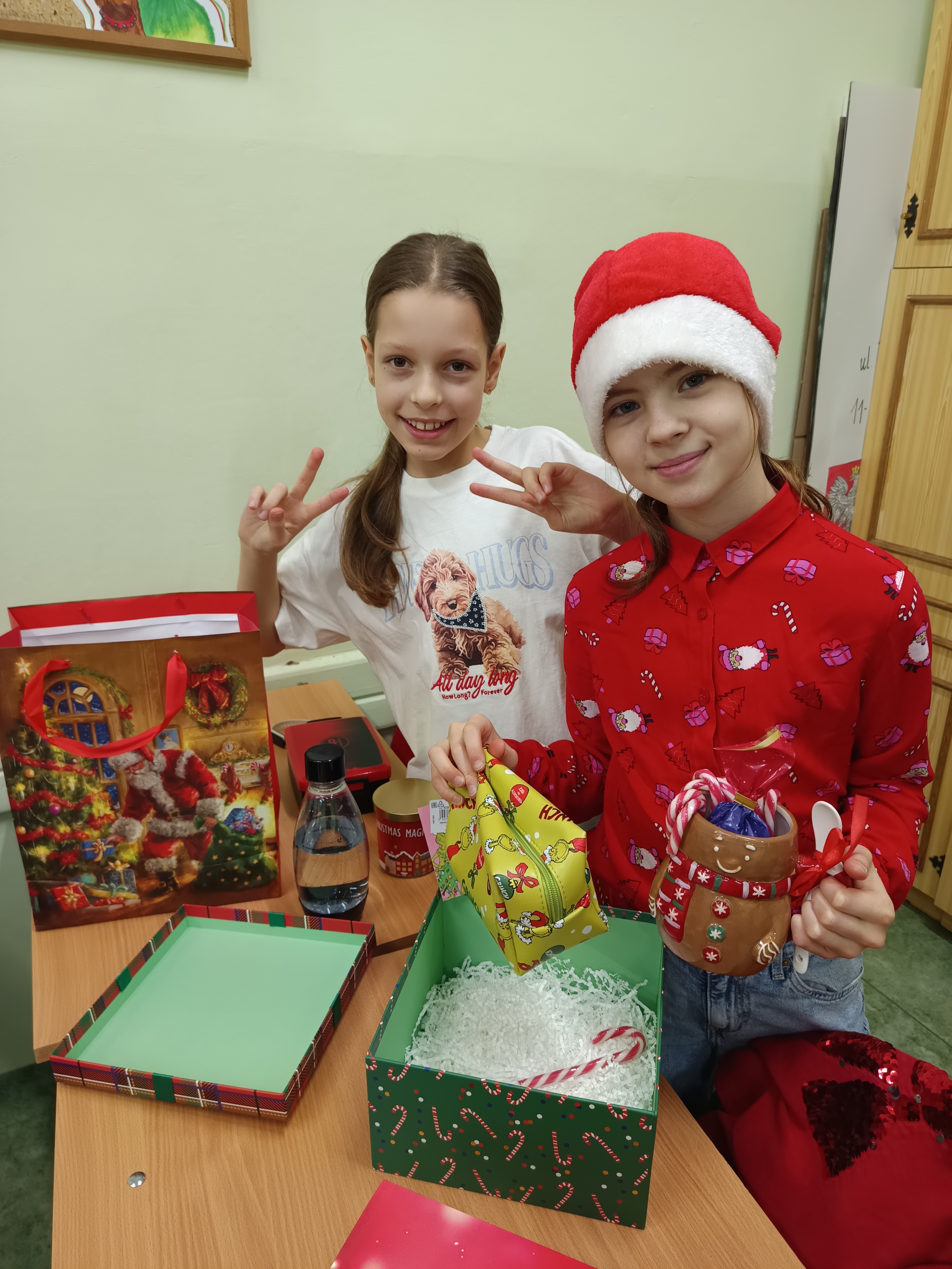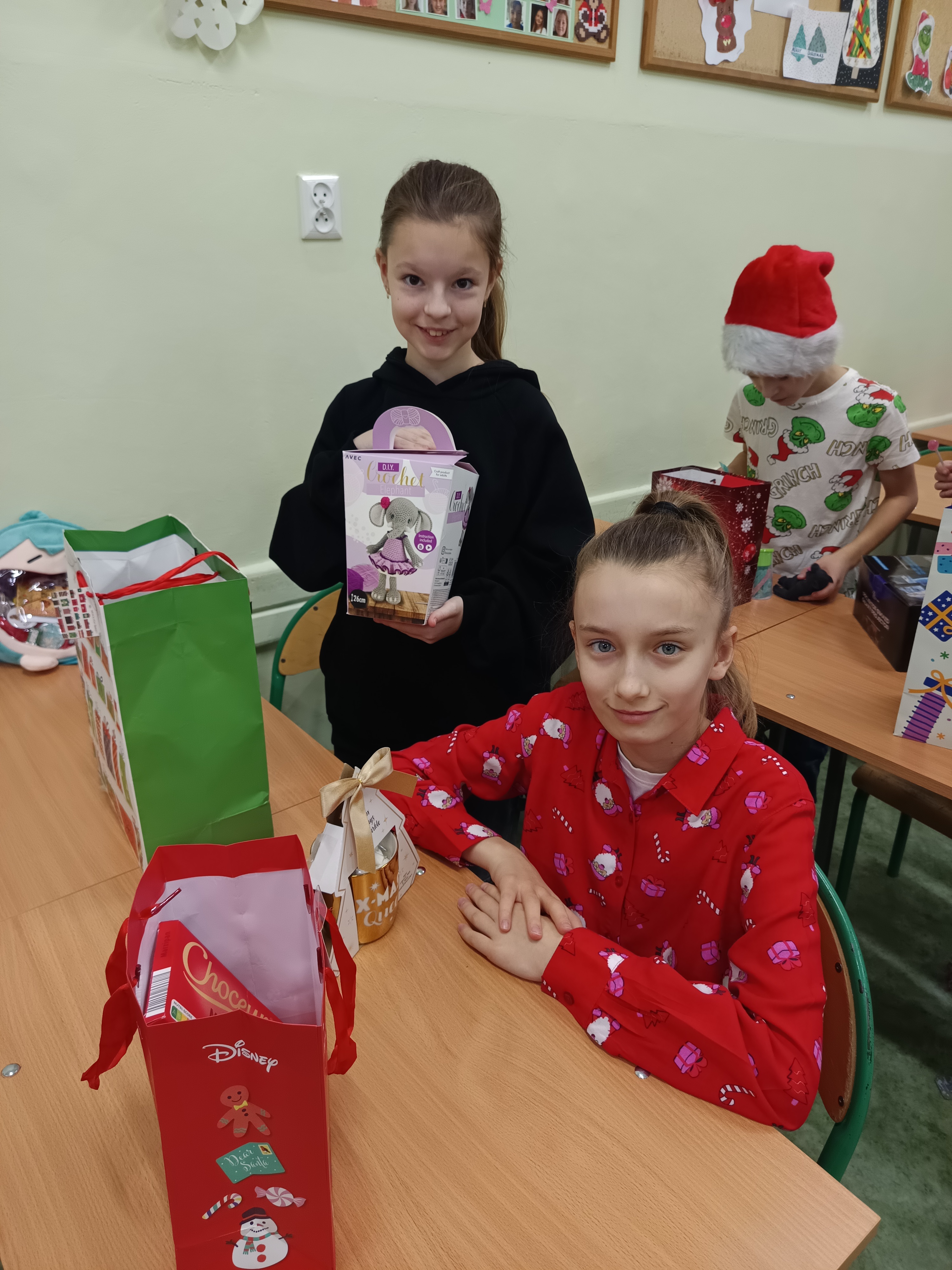 Potem wróciliśmy do szkolnych ławek, aby wręczyć sobie wzajemnie drobne upominki. Było wesoło i bardzo przyjemnie. Poczuliśmy atmosferę zbliżających się świąt Bożego Narodzenia.