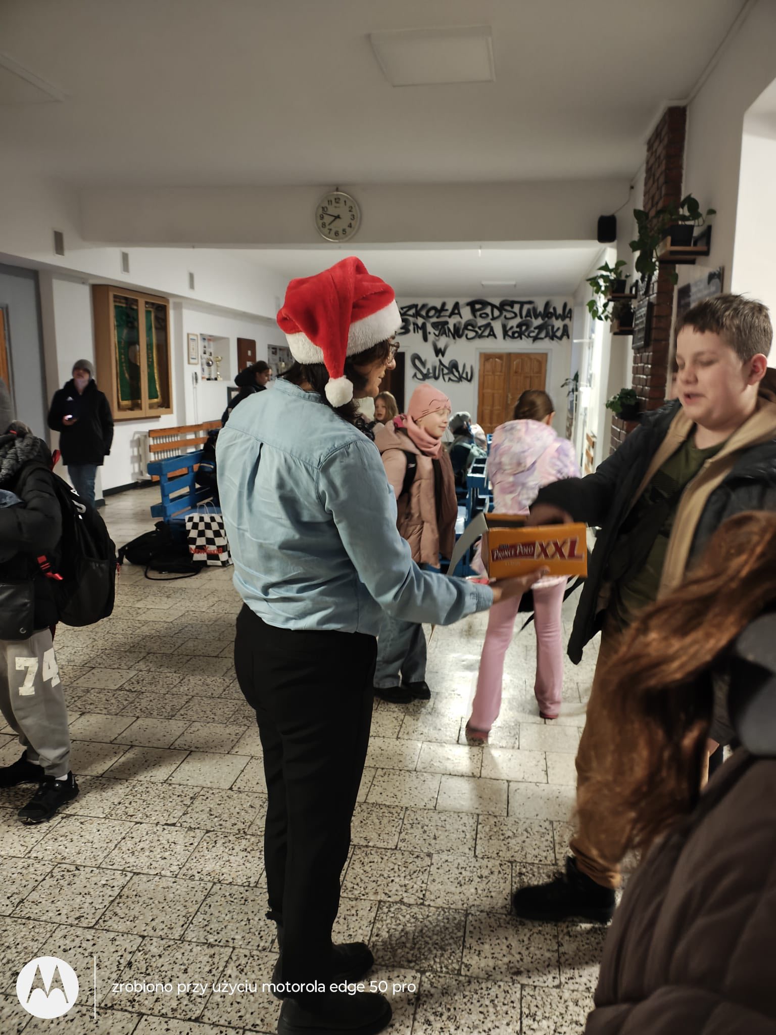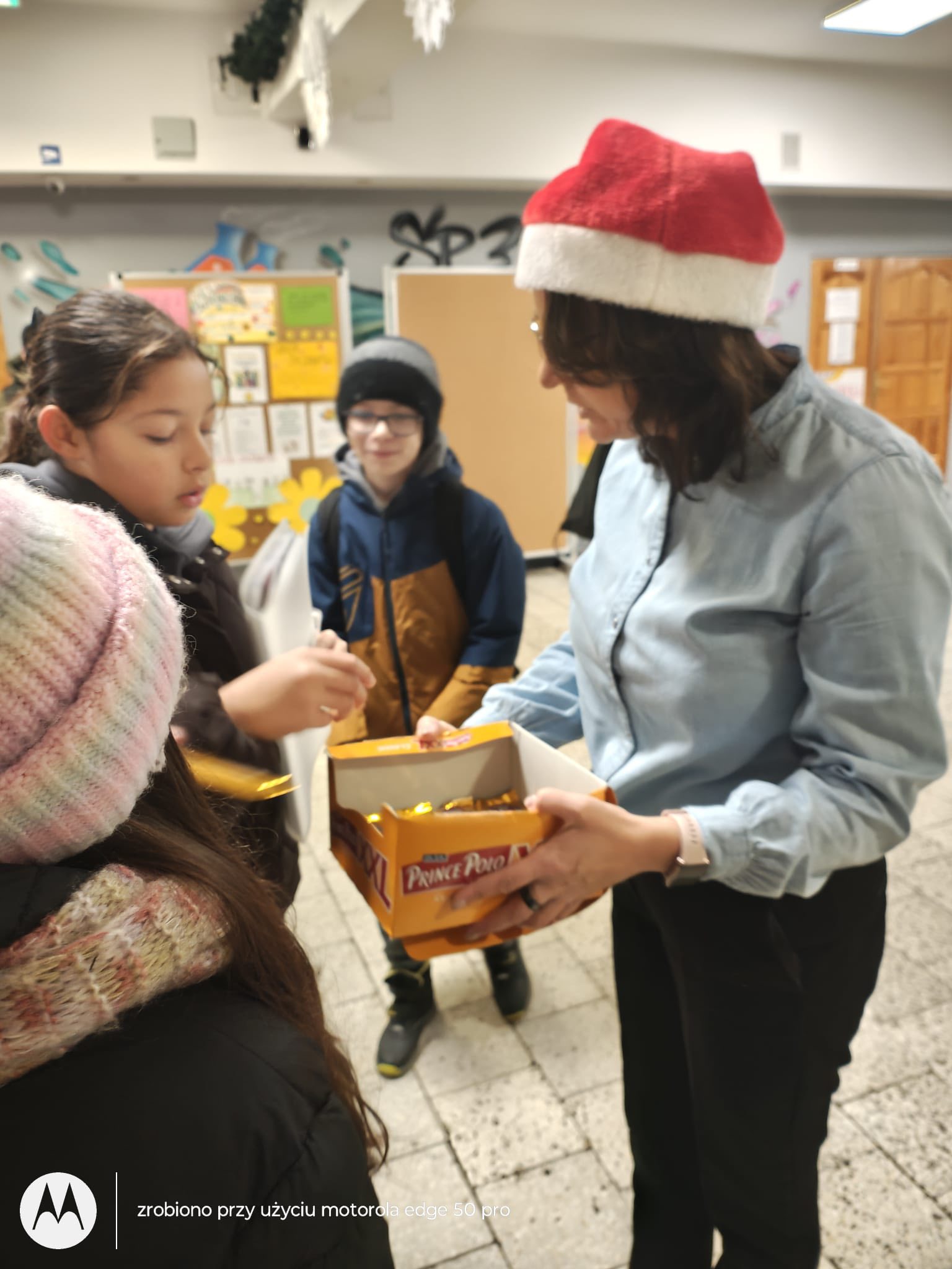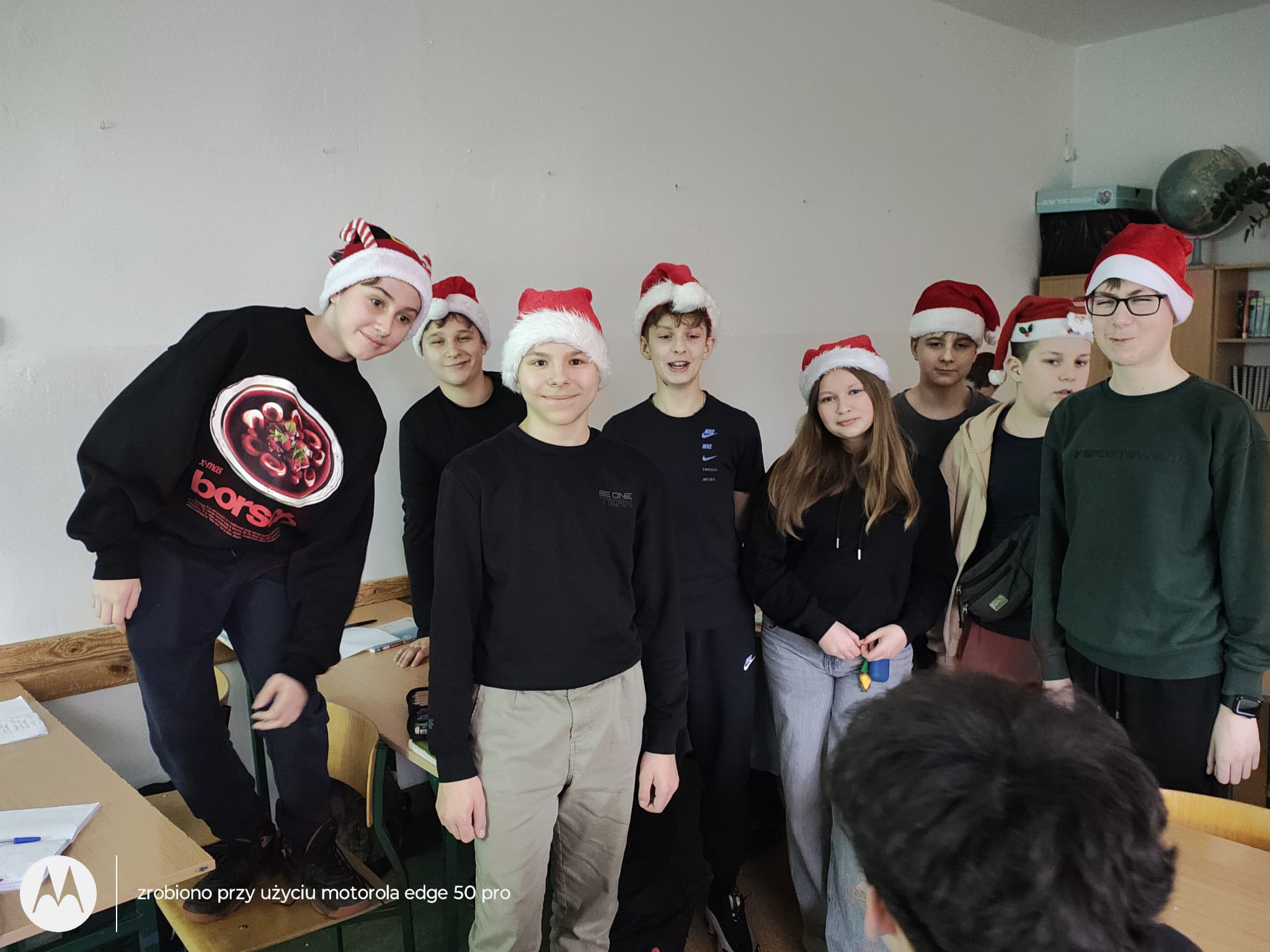 W ramach piątkowej akcji Samorządu Uczniowskiego „Czapka Mikołaja”, każdy uczeń, który założył czapkę mikołajkową, otrzymał prezent punktowy za udział w akcji oraz był zwolniony z odpowiedzi ustnych.