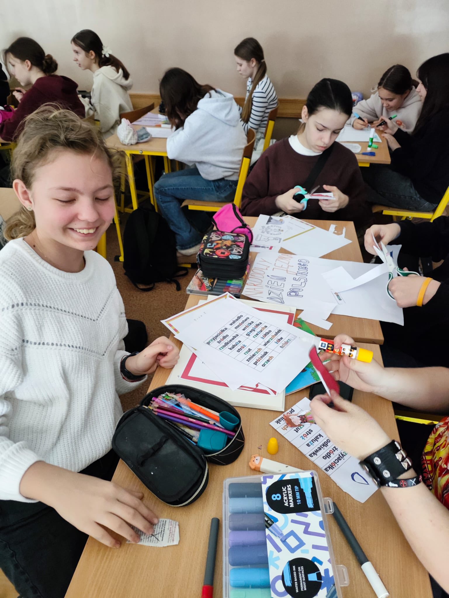 Podczas przerw uczniowie wyruszyli na poszukiwanie ukrytych zagadek językowych. Emocji nie brakowało, bo za poprawne odpowiedzi można było zdobyć… oceny z języka polskiego!