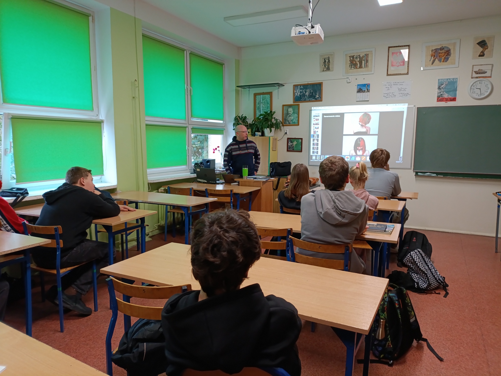 W dniu 24 października uczniowie klas ósmych mieli okazję odbyć godzinne szkolenie z panem Kamilem Wiśniewskim z fundacji zajmującej się bezpiecznym korzystaniem z Internetu, a właściwie z mediów społecznościowych. Młodzi ludzie żyją dziś na pograniczu świata rzeczywistego, a tego wykreowanego w środkach masowego przekazu. Dzięki tym zajęciom dowiedzieli się jak weryfikować informacje dostępne w sieci? Na co zwracać uwagę, aby mieć pewność, że newsy, które do nich docierają, są prawdziwe. Możliwości jakie daje dziś korzystanie ze sztucznej inteligencji są niesamowite. Jednakże trzeba pamiętać, że nie każdy używa AI w dobrych celach. W mediach pojawiają się często przekazy informacji odbiegające dalece od rzeczywistości, a ich weryfikacja staje się coraz trudniejsza. Czy potrafimy sobie z tym poradzić? Czy staniemy się zakładnikami mediów? Warto zadawać sobie takie pytania. To szkolenie trafiało w sedno problemu i w moim mniemaniu, należałoby je powtarzać co kilka miesięcy.